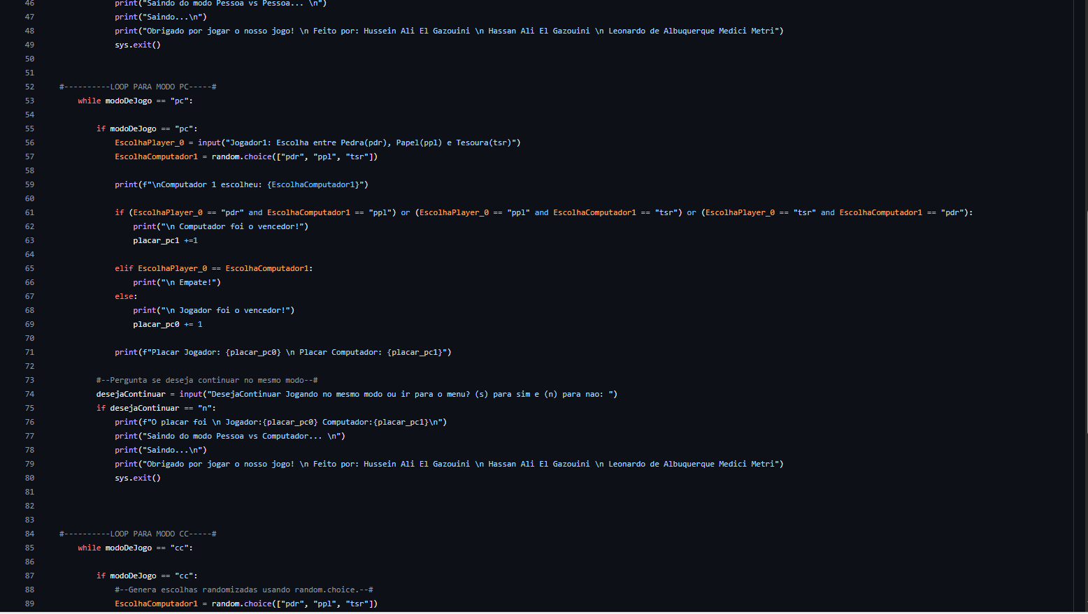 abaixo mostro os codigos que utilizamos para o projeto jokenpo: